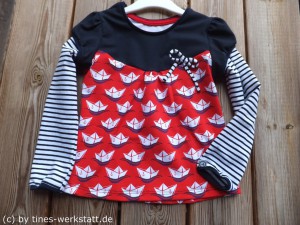 Da wir mit kühlem Ostseewetter gerechnet haben, habe ich den Schnitt etwas ergänzt und die Kurzversion inklusive dem langen Unterziehärmel genäht. Als Vorlage diente mit die Anleitung von Mamahoch2 „Kurz über Lang“.